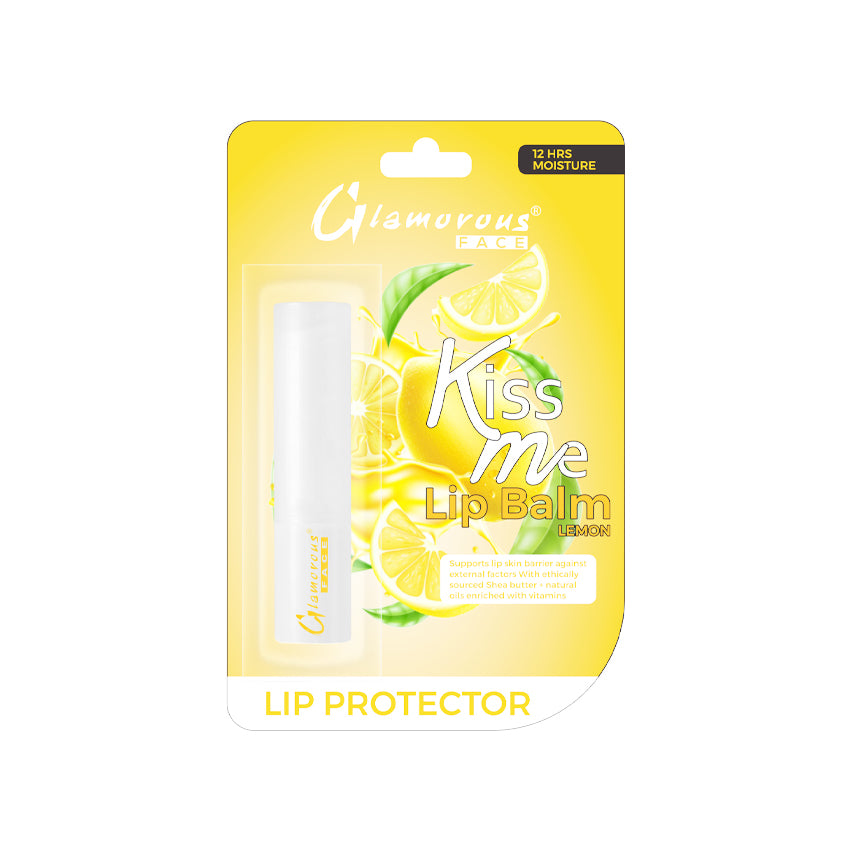 Refresh your lips with Glamorous Face Kiss Me Lip Balm in Lemon. Formulated with shea butter, natural oils, and vitamins, it keeps lips moisturized and protected while adding a citrusy freshness. The lightweight balm softens lips instantly, making them smooth, supple, and radiant.