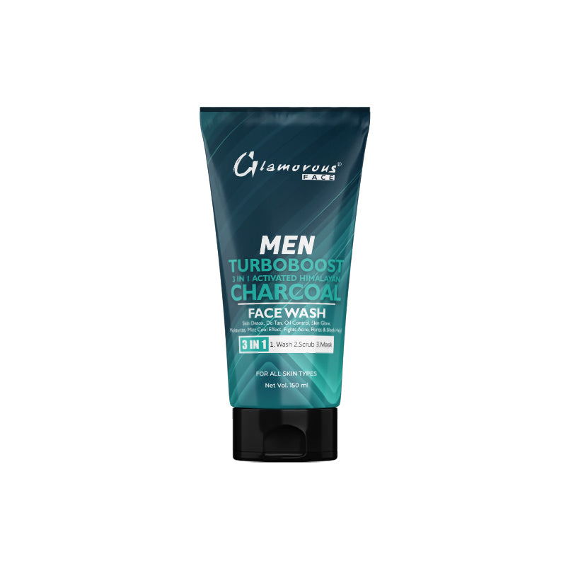 Glamorous Face Men Face Wash Turbo Boost 3-in-1 is the ultimate skincare essential for men. Powered with Activated Himalayan Charcoal, this multi-action face wash works as a cleanser, scrub, and mask — all in one tube. It deeply detoxifies skin, controls excess oil, fights acne and blackheads, unclogs pores, and provides an instant cooling and refreshing effect. Perfect for all skin types, this daily-use formula removes tan, boosts skin glow, and maintains moisture balance for a clear, energized complexion. Ideal for men who want fast and effective skincare without extra steps.