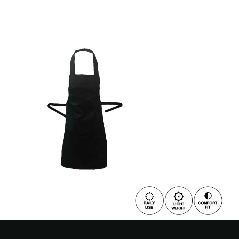 Ensure your staff looks professional while protecting their clothing from stains with the Glamorous Face economy Black apron! This apron features a sophisticated flat front with a convenient chest pocket for scissor , comb , knife etc
